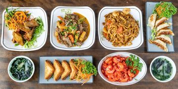 Soupe Wonton (2), Rouleau Impérial (4), Boulettes au beurre d’arachide (6), Riz frit avec oeuf (1), Poulet General Tao (1), Légumes assortis (1)