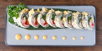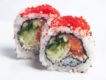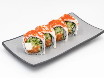 Fromage, Crevette Tempura, Tamago, Avocat, Concombre, Caviar Rouge (Top: Saumon Grillé, Patate Douce)
