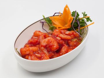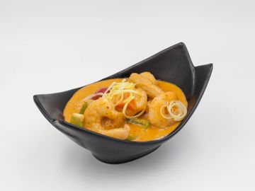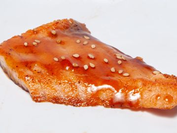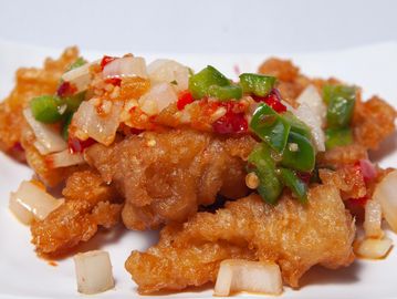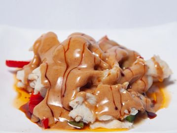 Saumon Frit, Onion, Carotte, Caviar Rouge, Sauce Dragon