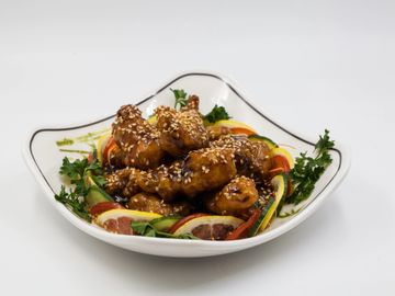 Poulet General Tao, Avocat, Onion, Salade, GT Sauce, Caviar Rouge, Sésame