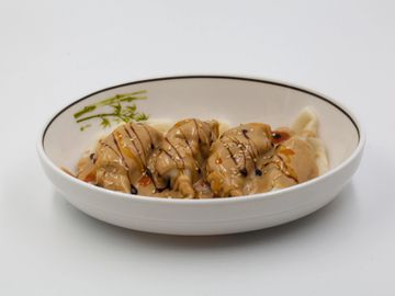 Poulet Frit, Poivron Rouge, Onion, Salade, Caviar Rouge, Sauce Dragon